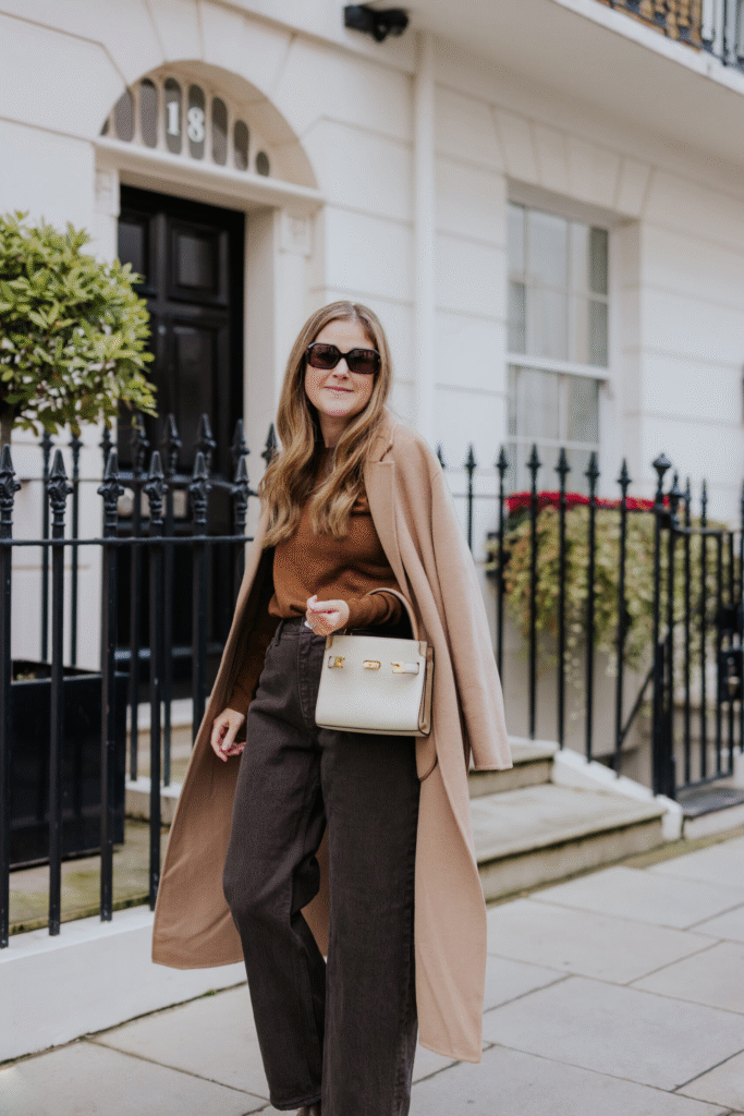 • Turtleneck + chic coat + statement scarf